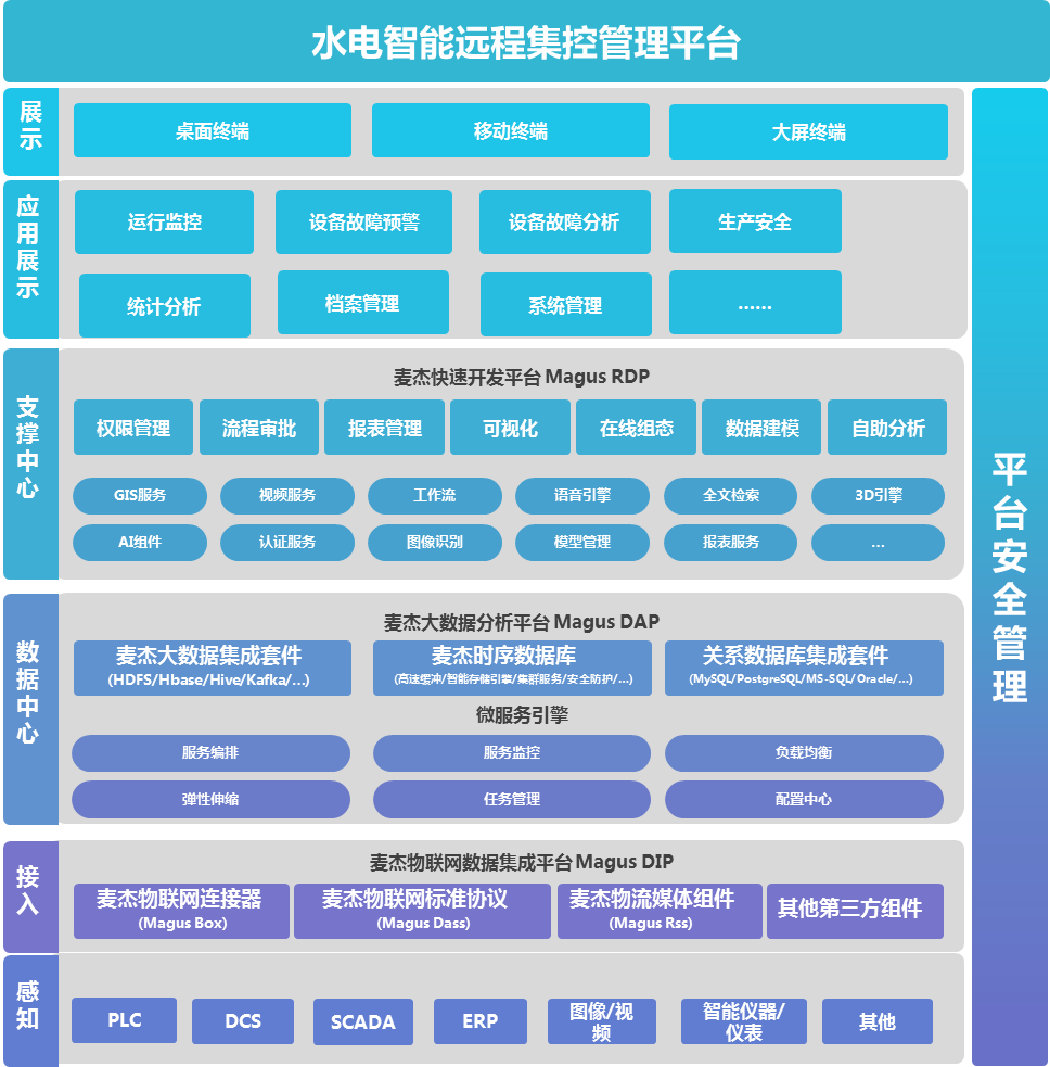 建设水电站远程集中调度监控系统,实现“遥测、遥信、遥调、遥控、遥视”功能,为各电站逐步实现无人值守(少人值守)创造了条件,为集团生产管控模式的探索和改变提供了强有力的技术支持,为电站控制中心城市化和集约化奠定了坚实的技术基础,对电站联合经济调度和优化运行、提高全流域水能综合利用效率具有重要的意义。实现低效的人工操作到高效的自动智能管控转变。